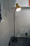 イギリス製のフロアスタンドランプです。ゴールドのカバーにブラックのスタンドです。カバーから35cm