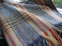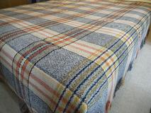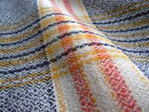 1950年代にウエールズで生産されたブランケットです。現在では生産不可能な手織り機による貴重な商品です。オレンジ、イエロー、グリーン、アイボリー、ダークネイビーと5色の糸を組み合わせたチェック柄です。ダブルサイズのベッドでもカバーできるサイズです。 made in UK〈店頭在庫)