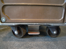 レバーを踏むと車輪が固定され、レバーを持上げると