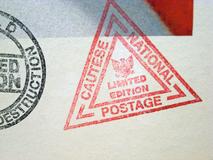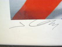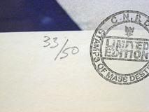 James Cauty の代表作。ユニオンジャックの背景にエリザベス女王の肖像画+ガスマスクとかなりのインパクトです。James Cauty 自らが生みだした架空の国の切手に表現された数々の作品はこのガスマスク姿のエリザベス女王を始めテロ、戦争、イラクがモチーフとなっています。作品は艶消しタイプのプリントで、直筆サイン、33/50のシリアルナンバー、自らが生み出したCautese National Postageの郵便局スタンプが入っています。英国でも入手困難な貴重な作品です。ポスターサイズに合わせて特注した重厚なブラックのアルミフレームで額装されています。フレーム幅5mmで作品を邪魔せずに美しく見せます。price はフレーム代込みのお値段です。