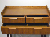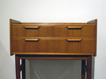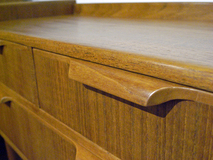 材質はチーク材+チーク突き板です。(店頭在庫)