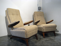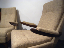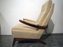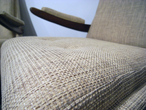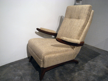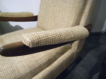 アームデザイン、低めの座面が特徴のデンマーク製 アームチェアーです。材質はチーク材です。 張地はイギリス製の生地で張り替え中材のウレタンも 交換済みです。座面の高さ38cm