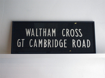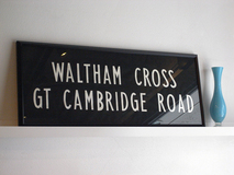 ロンドンバスフロントの行き先表示を カットし、木製のブラックフレームに 額装しました。行き先の街は Walthham crossはロンドン中心部から南南西に19キロの街 Gt-cambridge road → こんな所です http://isithackday.com/hacks/ohd-london/traffic.php?loc=47