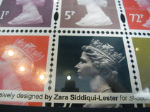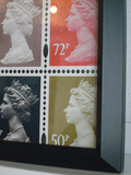 UK Royal MAILのカラフルなエリザベス女王の切手 をランダムに配置した作品です。数の威力です。 木製のジャストサイズフレームに額装済み 1点のみの入荷です。こちらのポスターは USEDで、額は新品となります。 Designed by Zara Siddiqui-Lester Printed in UK