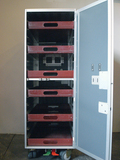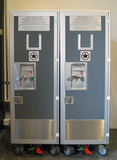 カナダ航空の機内用トローリーの未使用品 デッドストックです。滅多に入手できない かなりのレアものです。上部、下部に開閉式の 通気口、足踏み式のストッパー付きです。 トレーは中古になりますが完備です。 キッチンやデスクサイドにショップのディスプレー としてもお薦めです。製造メーカーはオランダに 本社を置く航空貨物用輸送機器専門のDRIESSEN社です。 http://www.driessen.com (店頭在庫) made in Canada &USA