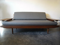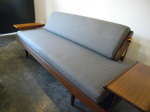 あるウールミックス平織り生地に張替え、中材のウレタン、