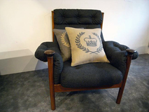 なデザインです。ダークグレーの張地はバージンウール