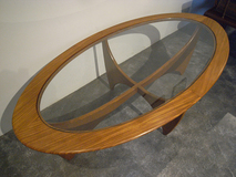 ラウンドシェイプの脚、に楕円形のトップが個性的な G-PLANを代表するデザインのテーブルです。 天板部分は再塗装済みでメンテナンスも万全です。