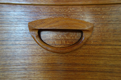カイ・クリスチャンセン デザインのチェストです。 底板まできれいに突板が張り込まれた丁寧な 仕上げです。 材質はチーク材です。古い塗装を全面剥離し、 再塗装仕上げしております。