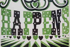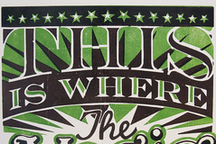 で、リノリウム版画方法を使用して、緑・茶色のインクで印刷されました。