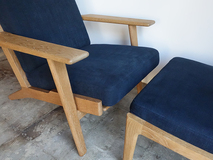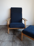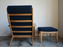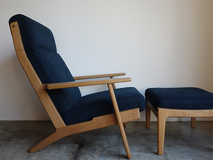 ゲタマ社製ハンス・ウエグナーデザインのGE290A+オットマン のセットです。フルメンテナンス済みです。 クッションは張地、ウレタン材を全て新規交換、スプリング調整し、 座面下のキルトも新調しています。フレームは全て古い塗装を剥離し、 オイル+ワックスで再塗装仕上げ済みです。 ハイグレードのイタリア製コットンリネン素材で張替済みです。