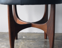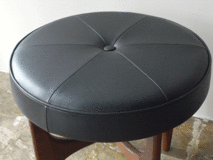 再入荷しました! イギリスE-GOMME社のブランドG-PLANの スツールです。ゆったりとした53cmの座面 で、リビング、デスク、ドレッシングテーブル と用途が広く、お家の中でのもち運びにも 便利です。座面はブラックの本革で張替え 内部ウレタンも全て新規交換しました。 made in UK