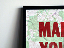 ANTIQUE MAP をカットし、一枚ごとに違う グランド用紙に木版印刷した作品です。 「MAKE YOUR OWN PATH」=「自らの道を切り開こう」 そしてその地図には具現化に向けて沢山の道が用意されています。 自らを信じて前に進んでみてください。プレゼントにも 最適なメッセージです。直筆サイン入りです ポスターサイズに合わせて特注した木製フレーム に額装済。額込のお値段です。