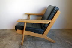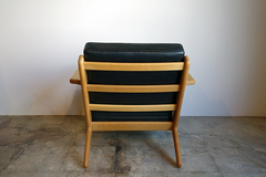 ハンス・J・ウエグナーデザインGE-290 一人掛けです。 GETAMA社製、材質はオーク材です。 フレームは古い塗装をすべて剥離し、ホワイトワックスで 素地を活かした無色の再塗装済みです。 クッションの内包スプリングを調整し中材のウレタンも すべて新規交換致します。座面下のキルトも新規交換 し、長くご使用戴けるようフルメンテナンス致します。