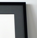 グレーのマット紙で作品を囲み木製(木目けし)の