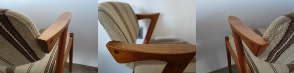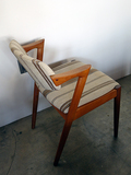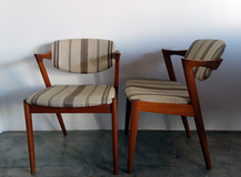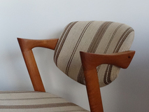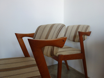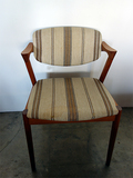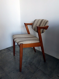 NO.42 ダイニングチェア、カイクリスチャンセンの デザインです。張替前の状態です。お好きな生地を お選びいただき張替可能です。 座面、背もたれのウレタン、座面下のベルトすべて 交換しフルメンテナンスしてのお渡しとなります。 在庫1脚 座面の高さ44㎝ made in Denmark (店頭在庫)