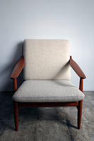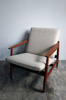 ポールM.ヴォルター デザインのイージーチェア モデルNO.340チーク材仕様です。フレームは古い 塗装をすべて剥離した後にオイル+蜜蝋ワックスで 再塗装済みです。生地は張替前の状態です。 お好きな生地をお選び戴きお渡し可能です。 張替費用を含めました価格となっております。 お選び戴く生地により価格は表示価格より前後いたします。