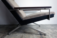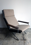 オランダのデザイナーRob Parry1950年代の デザインです。アーム、フレーム(ブラック塗装)は木製、 脚はスチール製です。木、鉄、布の3素材のバランスが 絶妙でハードになりすぎないインダストリアル デザインです。 張替前なので張地をお選びいただけます。内部ウレタンも 新規交換致します。お選び戴く生地によりましてお見積り させていただきます。