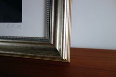ハンドスクリーンプリント、淡いゴールドカラ―のクラシカルなフレームに