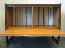 1960年代イギリスのレコードキャビネットです。 レコード用としては勿論、本棚、テレビ台 としてもコンパクトです。 高さが押さえめなので、上にテレビや プレイヤーを置いてもお部屋で圧迫感なく 使用できます。