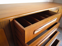 再入荷しました! G-PLANを代表するフレスコシリーズのサイドボードです。 幅は2m超ですが奥行きが46㎝とコンパクト、空間を意識し すっきりとした脚部のデザインで、圧迫感なくお部屋に配置 出来ます。