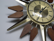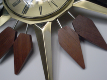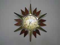 ANSTEY & WILSON LTD のウォールクロックです。 太陽から放射する光をイメージし中心から外にむけて スパイクを付けています。1960年代後半から1970年代に かけてリビングを飾るアイテムとして流行しました。 ながくご使用戴けるようにMOVEMENT 新規交換済み です。 made in UK(店頭在庫)