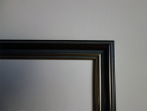 作品サイズに合わせて特注した木製シルバー塗装額