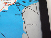 色鮮やかなブルーの海にホワイト(一部グレー)の陸地に