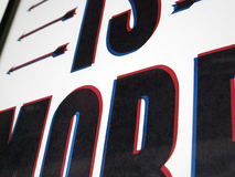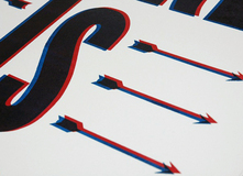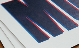 ブルーとレッドの2色の木版を2㎜から3㎜ずらしてプリントし、