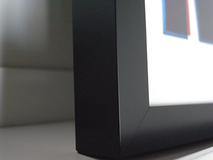 ポスターサイズに合わせて特注した木製のブラックフレームに