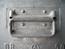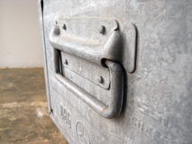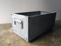 メルセデスベンツ社の工場で使用されていた、 重厚なガルバリウム鋼板製のボックスです。 スタッキング可能です。在庫1台となりました。