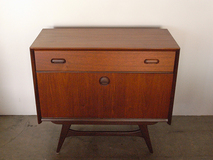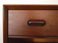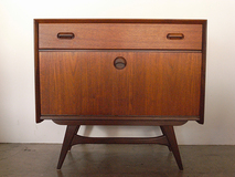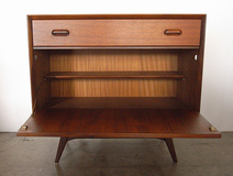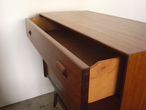 ラウンド型のハンドルがポイントのスモール サイドボードです。愛嬌のあるフェイスデザイン で存在感がありながら、脚まわりがすっきりと 奥行も40センチとコンパクトで圧迫感はありません。