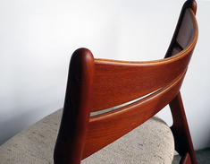 エリック・バック デザインのダイニングチェアー です。チーク無垢材を贅沢に使用し背面フレーム、 後ろ脚と一体となったしなやかな"く"の字型のラインが 特徴です。また、しなやかな曲線を描き、背中の形状に 沿い吸い付くようにしっかりとホールドしてくれる背もたれは 機能美と言えます。大きめサイズの座面で大柄な方も ゆったりとお座り戴けます。