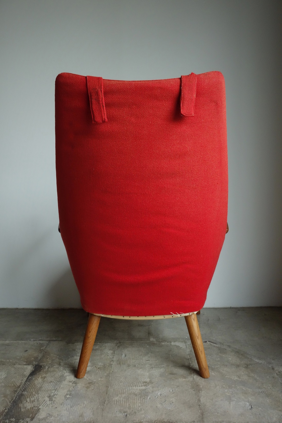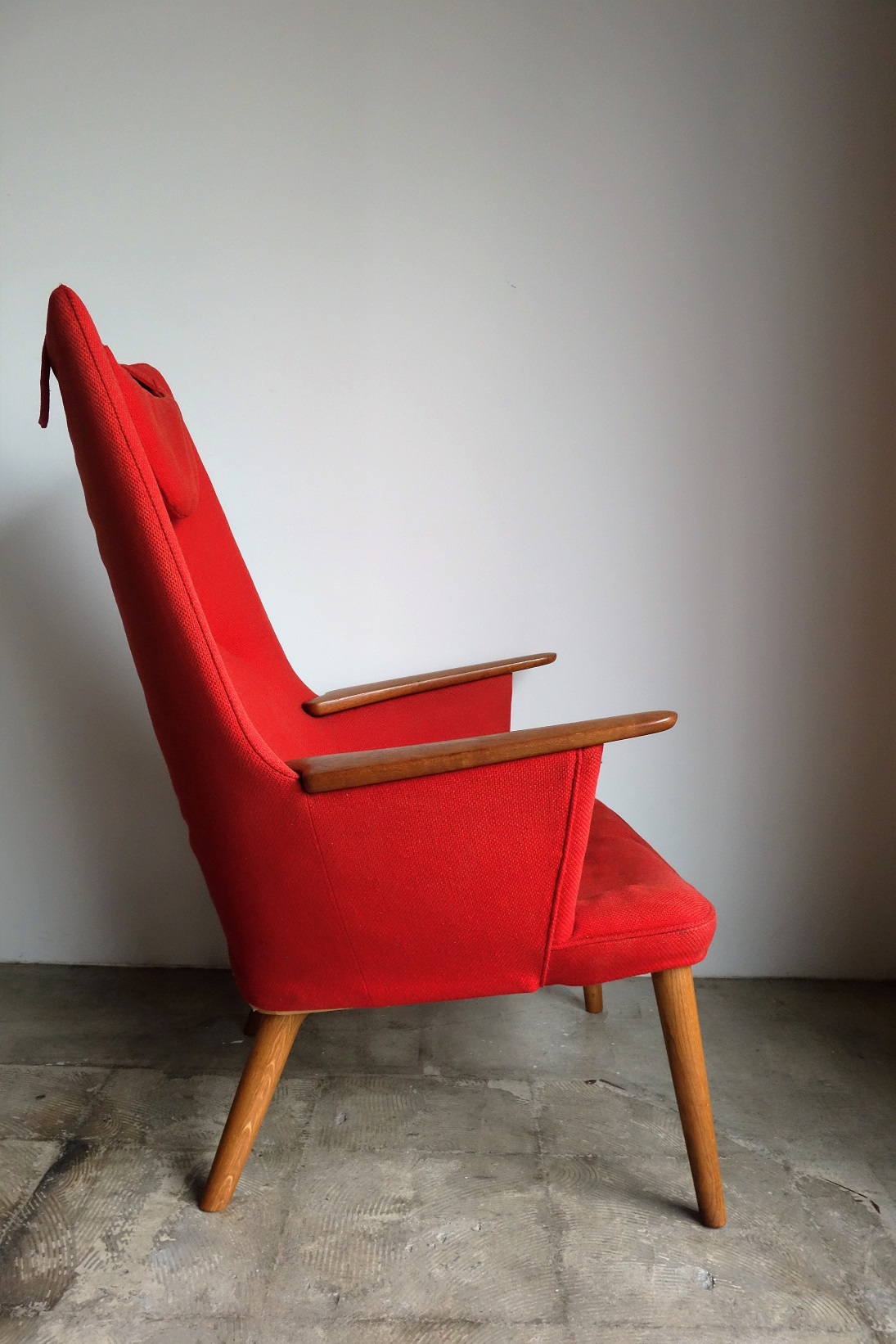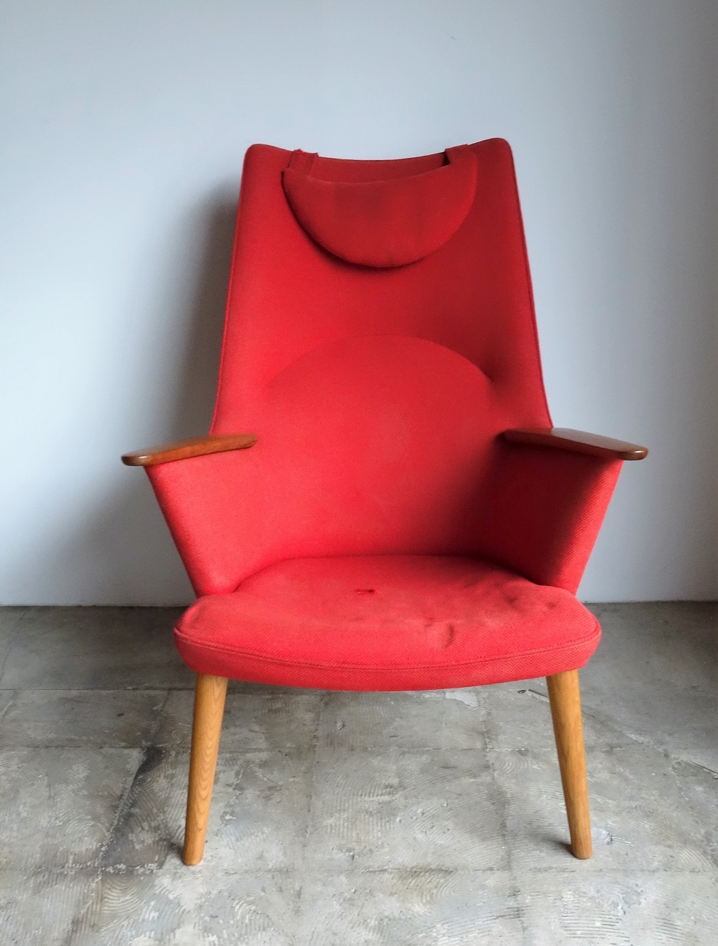 ハンスJ.ウエグナーデザインのママベアチェアAP2 肘掛【チーク】、脚部【オーク】のコンビネーション仕様 です。緩やかな傾斜と包み混まれるようなフォルム、 低く抑えられた座面高の絶妙なバランスで安楽性が高く、 究極のリラクゼーションチェアと言えます。1951年に ベアチェアとともに発表されましたが、現行では生産されて おらずヴィンテージ家具市場でも非常に流通量の少ない 椅子です。また幅約75㎝、奥行き80㎝と間口の狭い玄関、 お部屋への搬入も可能なサイズとなっています。 Designer: Hans J.Wegner material: Arm- teak ,Leg- Ork manufacture: AP stolen made in Denmark
