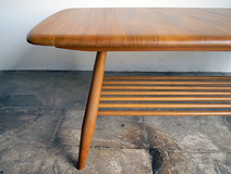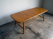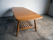 再入荷しました! 英国アーコール社のセンターテーブルです。 高さを抑えたデザインでリビング周りをすっきりと 見せてくれます。天板下には収納もあり、新聞や 本なども収納できます。天板は再塗装済み Made in UK(倉庫在庫)