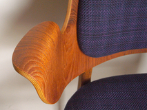が特徴です。フレームはオーク材、背もたれアームはチーク