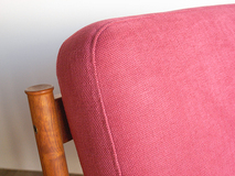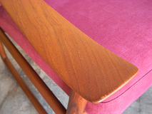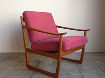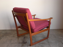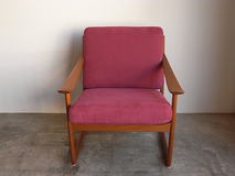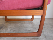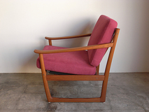 デザインユニット ピーター・ビット&オルラ・ムルガード・ ニールセン による1人掛けチーク材ソファーです。1961年のデザインです。 同シリーズの3人掛け、テーブルも入荷しております。アーム、 脚が一体となったソリのようなデザインが特徴です。イタリア製の 肌触りの良いコットンリネンで張替済み(プラムカラー)。 中材ウレタン新規交換、スプリング調整、座面下裏地も新規交換 しております。