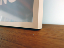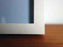 オフホワイト塗装のスペイン製木製フレームに額装済みで、