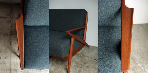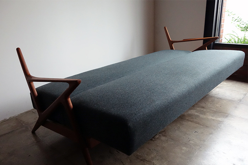 Poul Jensenデザインの通称Zソファです。 繊細なアームの造形美、アーム先からすらりと 伸びた後ろ脚のフォルムが特徴です。 フレームは古い塗装をすべて剥離し、オイル+ワックスで 再塗装仕上げ済み。張地はUK MOON社製の上質な へリンボーンツイードで張替済みです。内部のバネも調整 し中材のウレタンもすべて新規交換しております。 フルメンテナンス済みでの販売です。