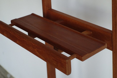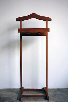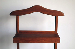 ジャケット、パンツ、ネクタイやアクセサリーなど 着替え準備や、着たもの片づける為のスタンドです。 トレー部分にはアクセサリーや時計など身につける 小物を置いて、ハンガーにはジャケットをフロントの バーにはパンツを掛けます。 材質はチーク材です。 manufacture: PBJ mobler made in Denmark