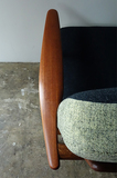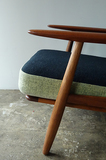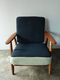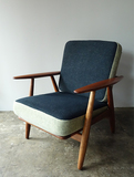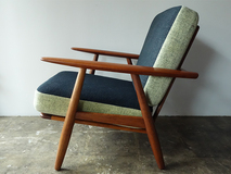 ハンス・ウエグナーデザイン、ゲタマ社製の GE240イージーチェア、希少なチークアーム、 オークフレーム仕様です。焼印のないものが GE240は多いのですが、焼印もしっかりとついて おります。 古い塗装をすべて剥離し、サンディング後にオイル +ワックスで再塗装仕上げています。