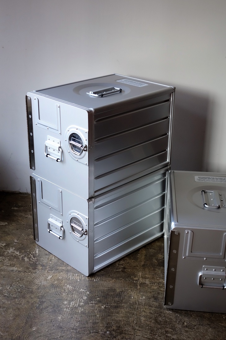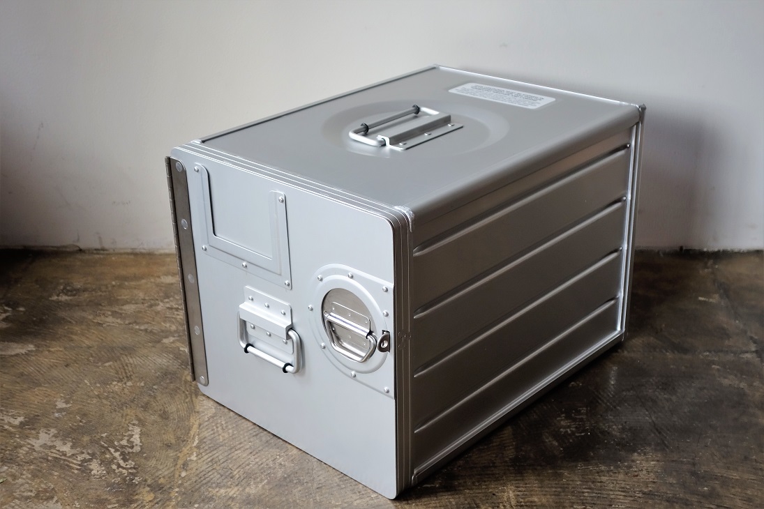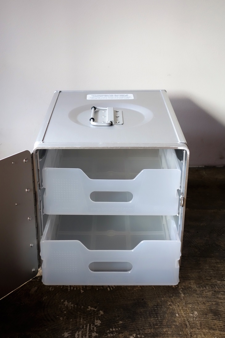 フルアルミニウム製、内部には引き出しが2段収納されています。