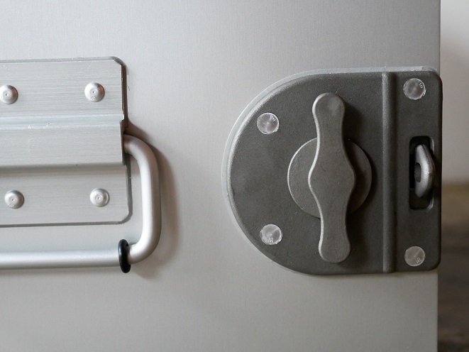 フルアルミニウム製、内部には引き出しが2段収納されています。