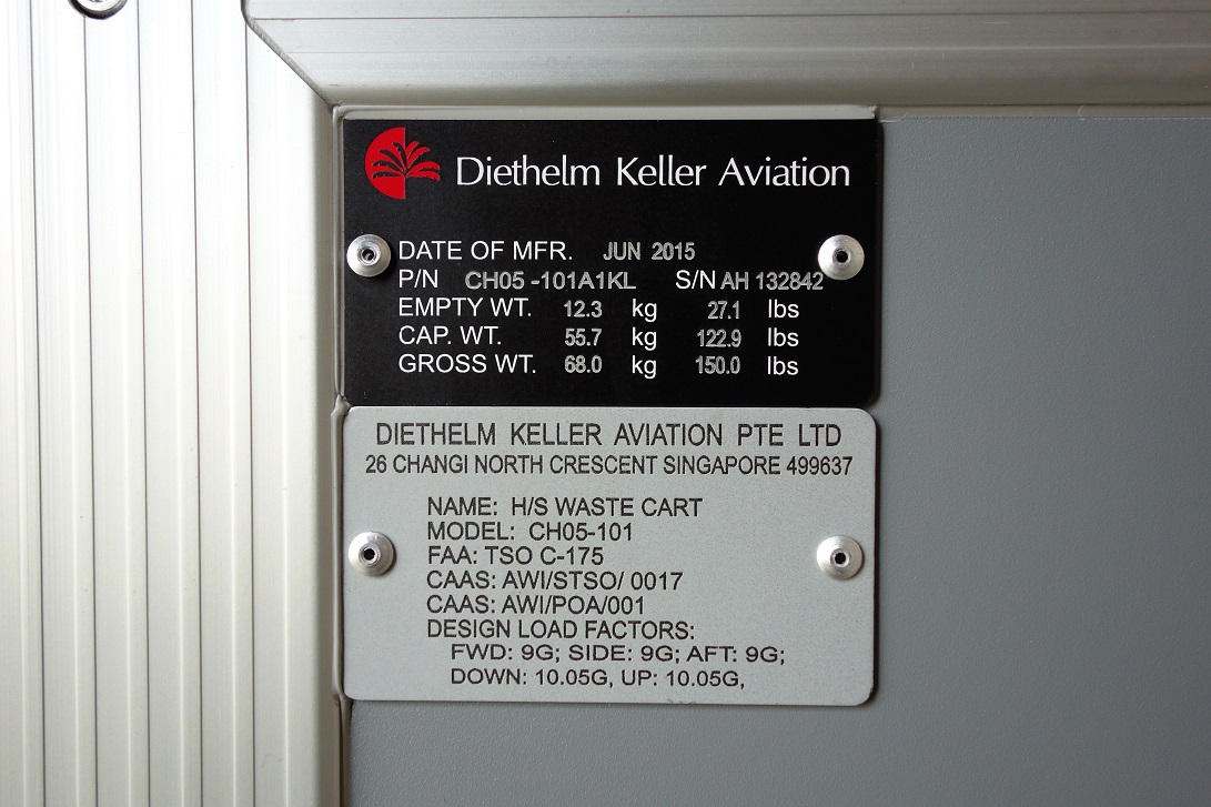 製造は1860年にスイスで創業し現在シンガポール を本拠地とする、航空貨物用輸送機器専門の グローバル企業Diethem Keller社です。エアバス社 ボーイング社などで製造する航空機に採用されています。