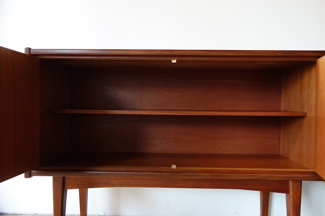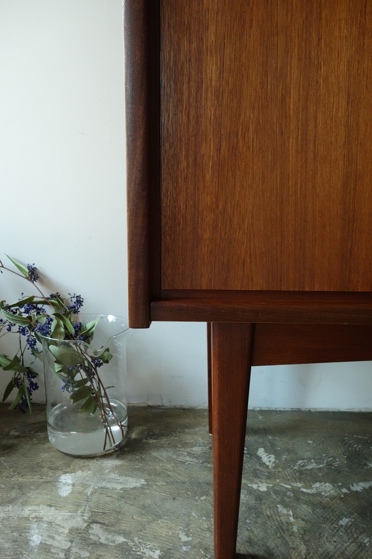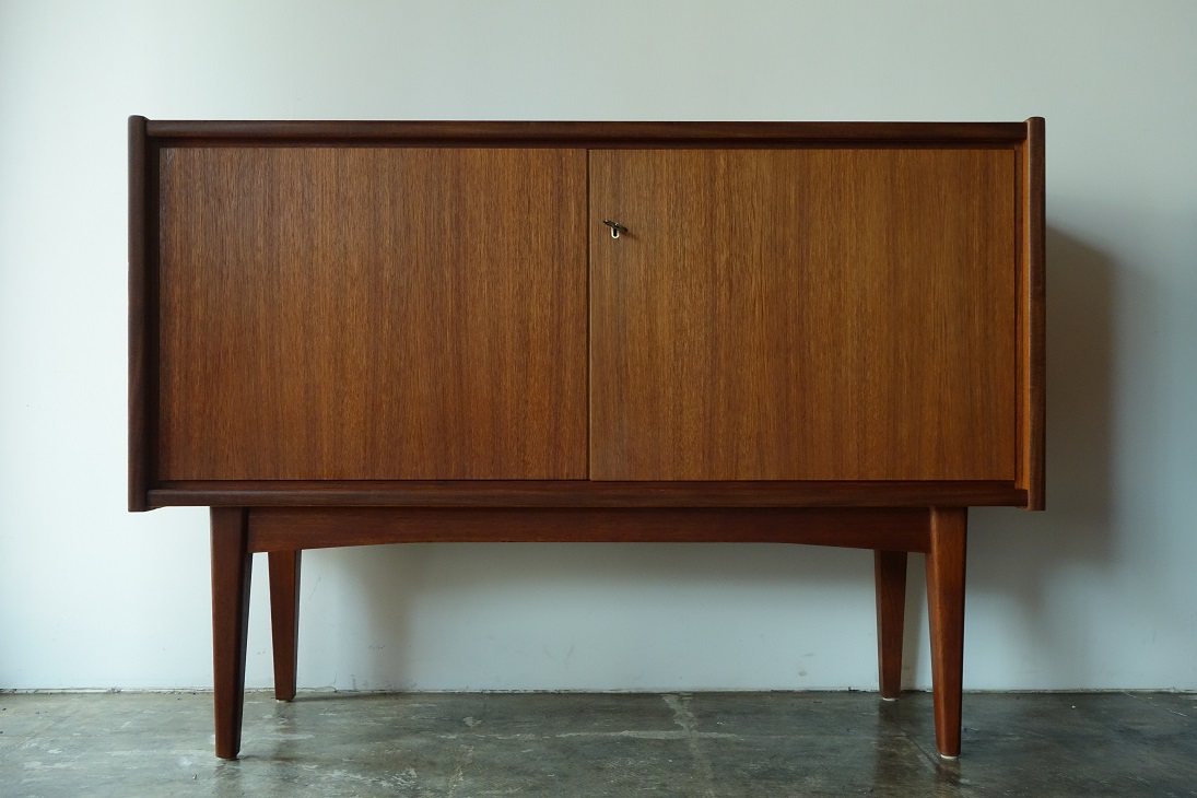 シンプルなデザインで幅117、奥行き40.5㎝と コンパクトなサイズのキャビネットです。 開口が広く、出し入れもスムーズで、コンパクトな サイズながら収納力抜群です。ドイツBARTELS社 の企画でデンマークで生産されたものです。 オイル+ワックスで再塗装仕上げ済み