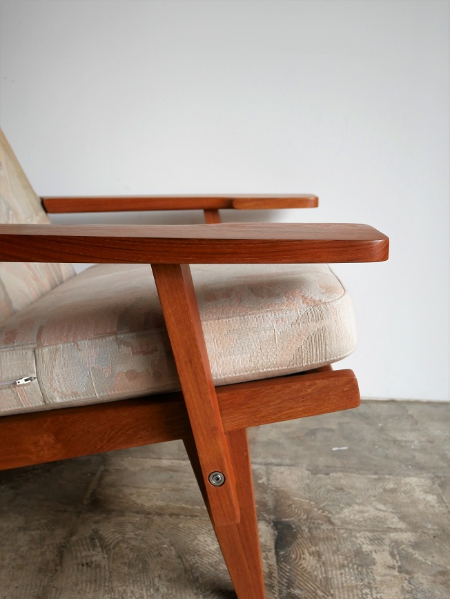 材質はチーク材です。背と座のクッションは希少なバネ入り