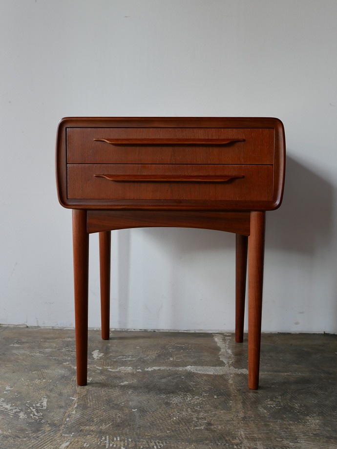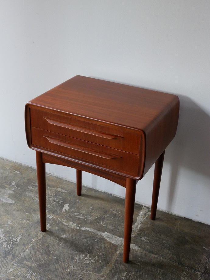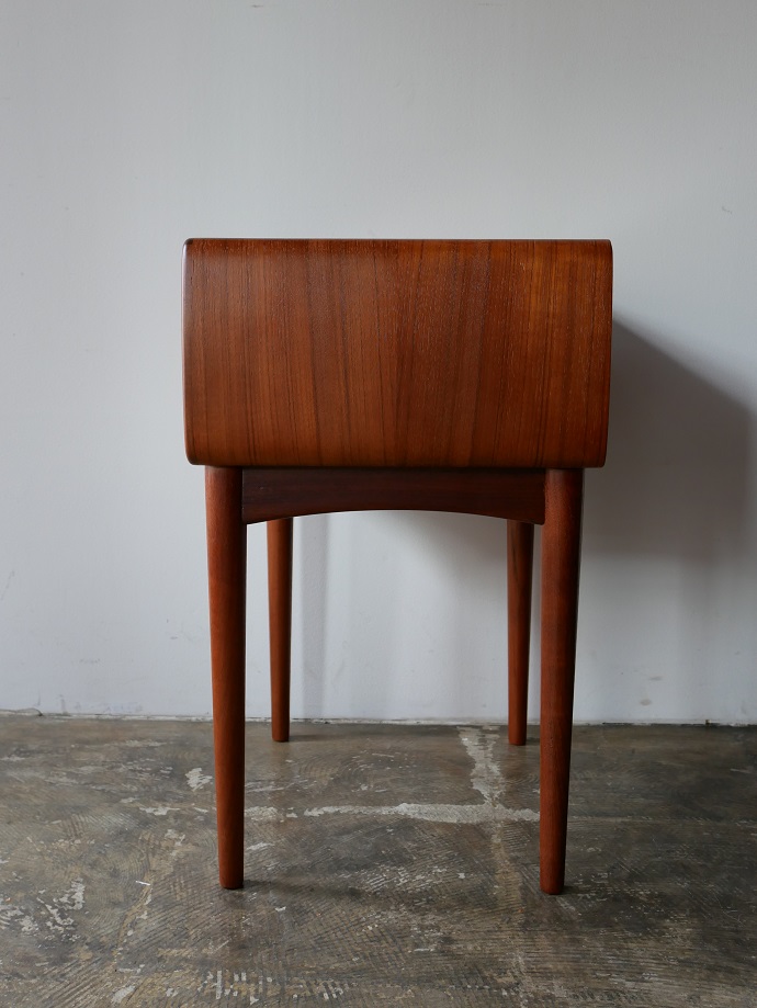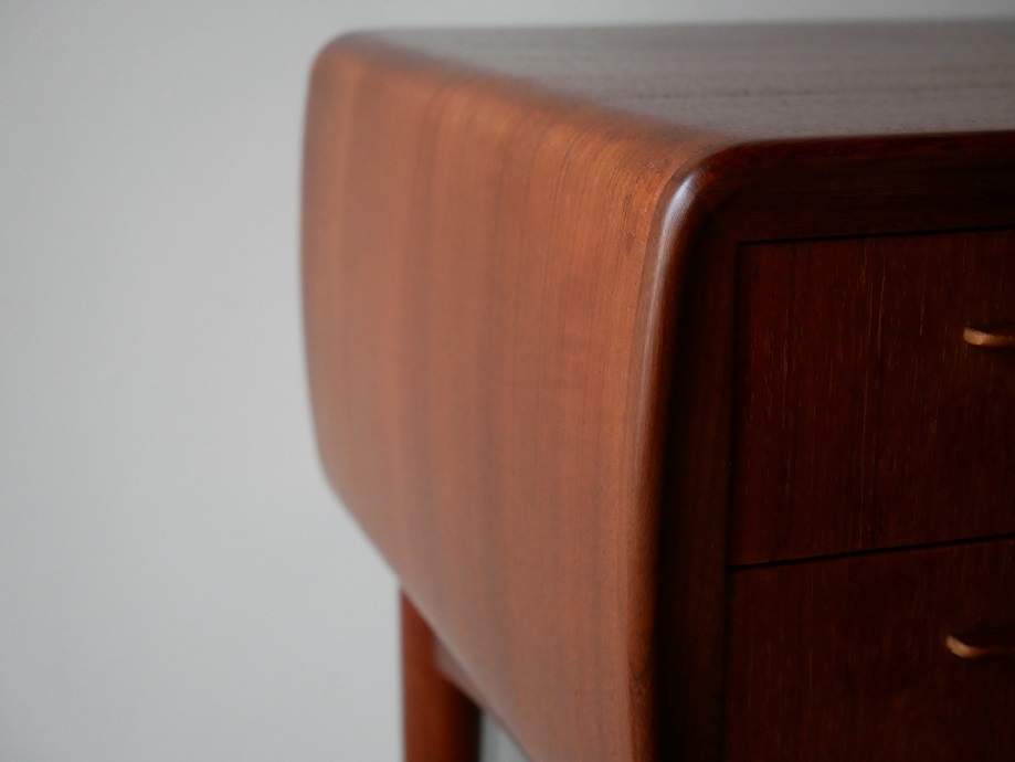 トップから両サイドにかけて継ぎ目のないアール が特徴です。ソファやベット脇に配置しサイドテーブル として、また、玄関収納としてもお薦めです。