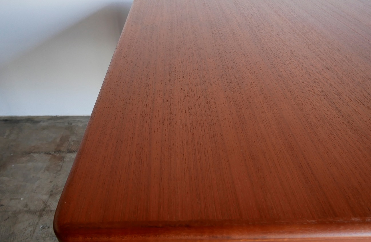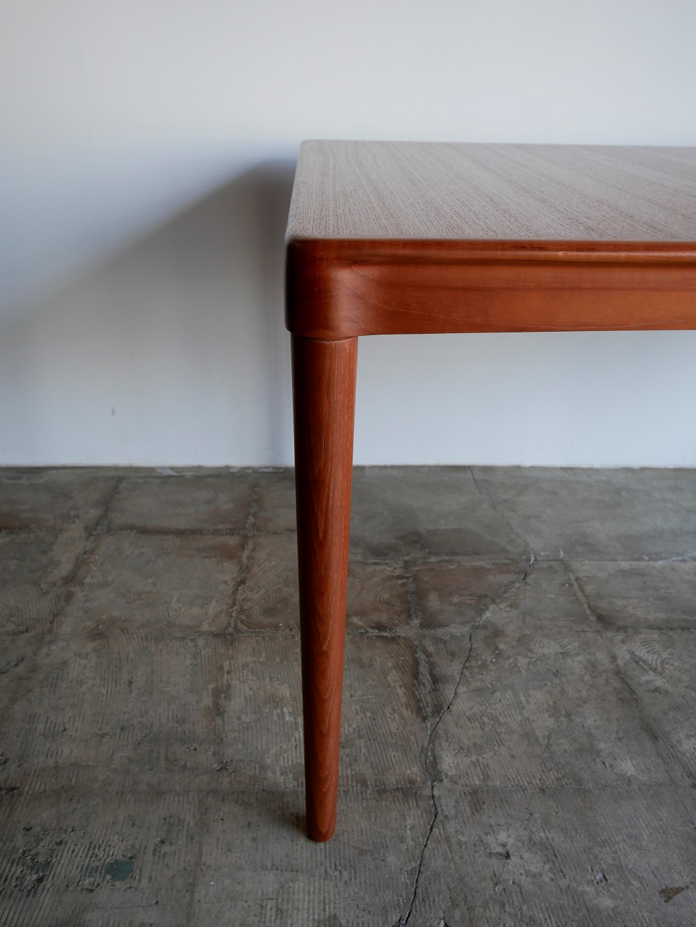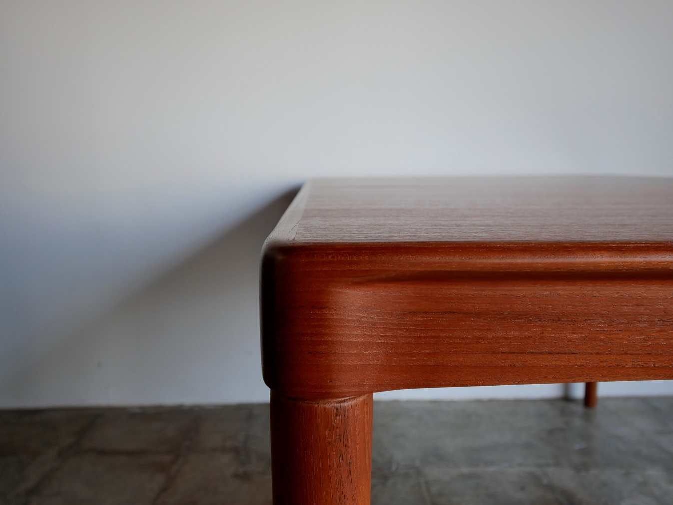 天板周囲のなめらかに削り込まれたライン、 ラウンドしたコーナーと、華美なデザインで はありませんが質感の高い優美なフォルム です。 天板下収納で拡張テーブル1台付属:幅60㎝ 天板幅 195㎝まで拡張します。 manufacture:Bramin made in Denmark(店頭在庫)