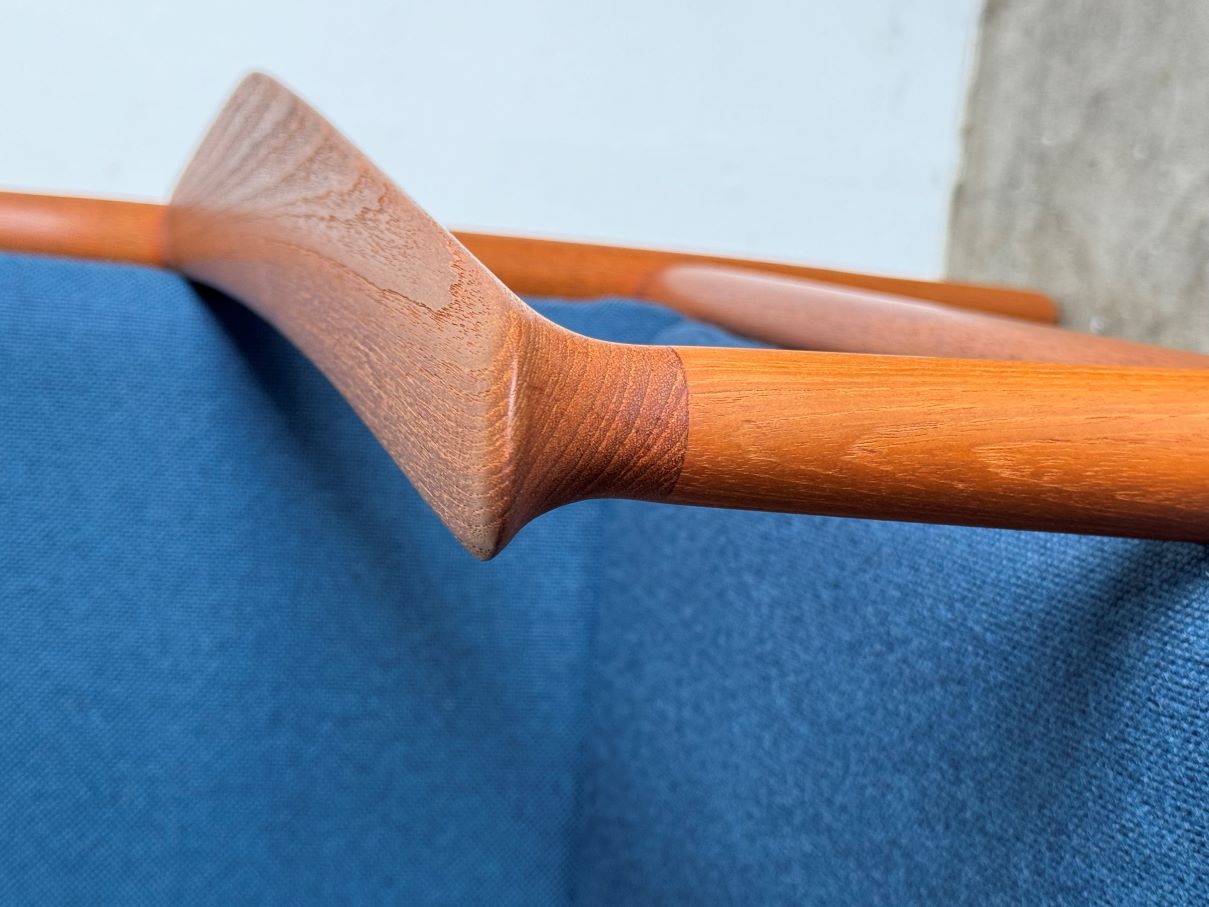 チーク無垢材を贅沢に削りだしたシャープなアームライン