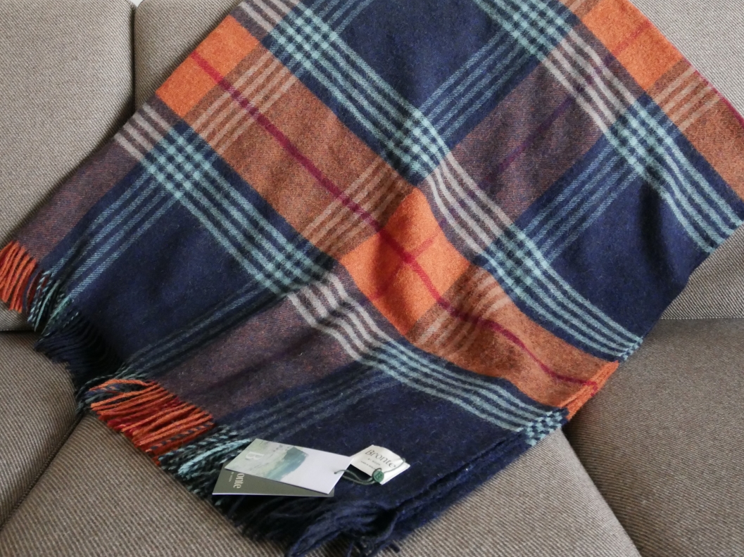 < NAVY CHECK > イギリスMOON社のブランドBronteのウール スローです。幅140cm×185㎝でソファやベッドカバー としてご使用戴ける大判サイズです。